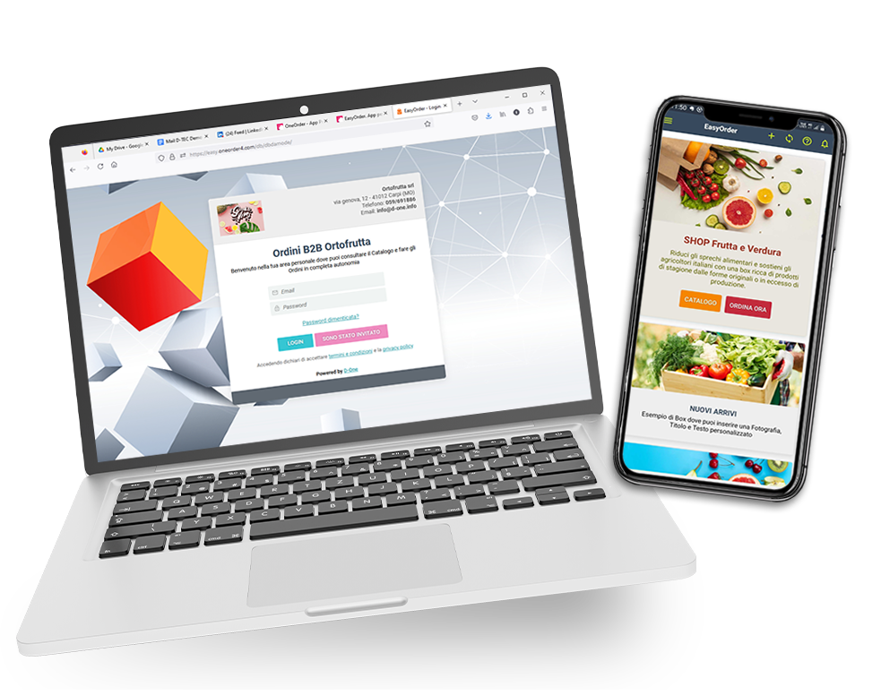 OneOrder B2B Professionale per i Clienti e Partner commerciali. Un applicativo App e una Web App riservata ai tuoi Clienti, che in autonomia, nel momento del bisogno, inseriscono i loro Ordini direttamente, consultano le Promo Commerciali e gestendo i riordini.